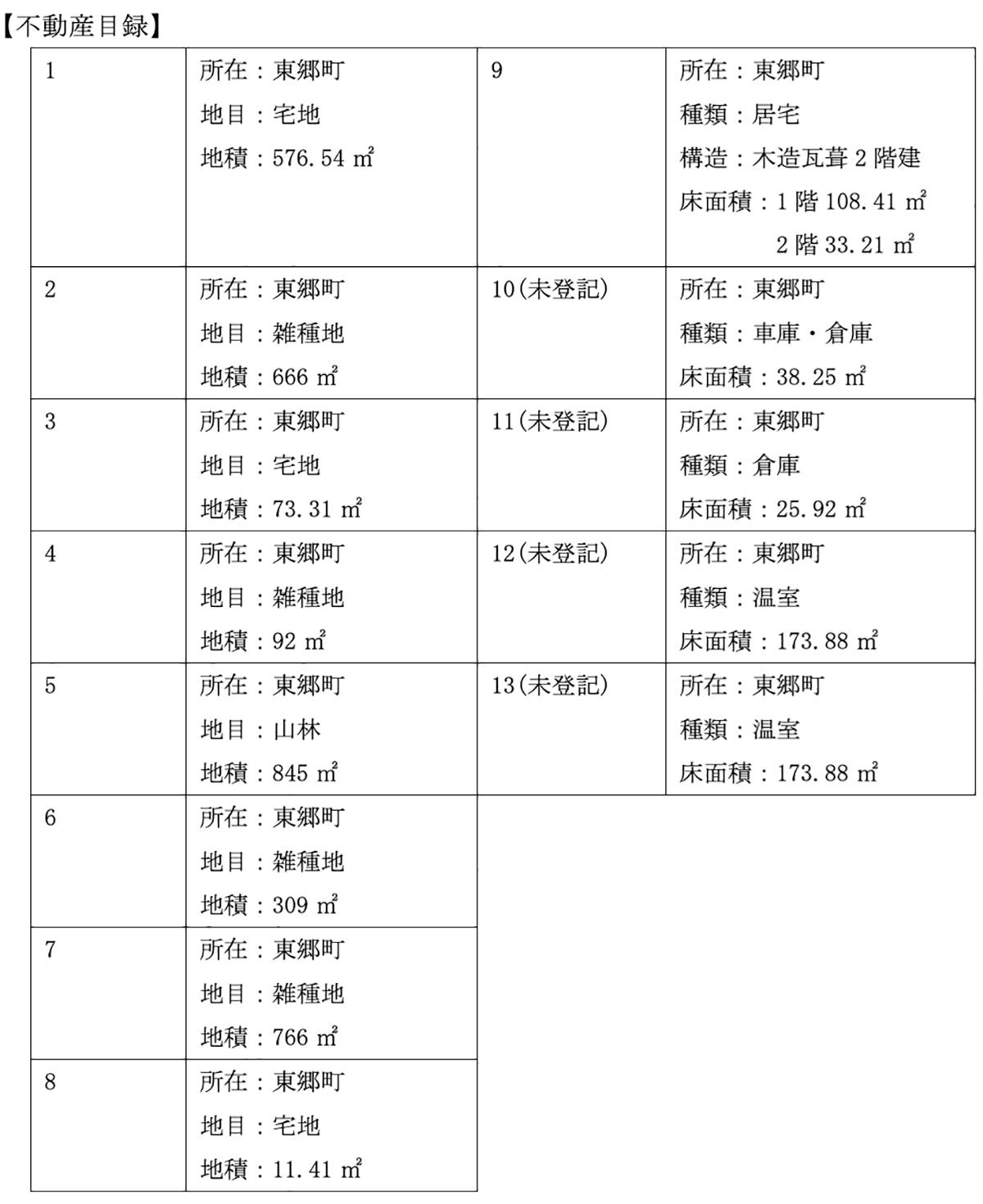 以下、同目録9記載の建物を「本件住宅」、同目録10記載の建物を「本件車庫・倉庫」、同目録11記載の建物を「本件倉庫」、同目録12、13の建物を併せて「本件温室」、本件温室以外の各建物を併せて「本件住宅等」という。